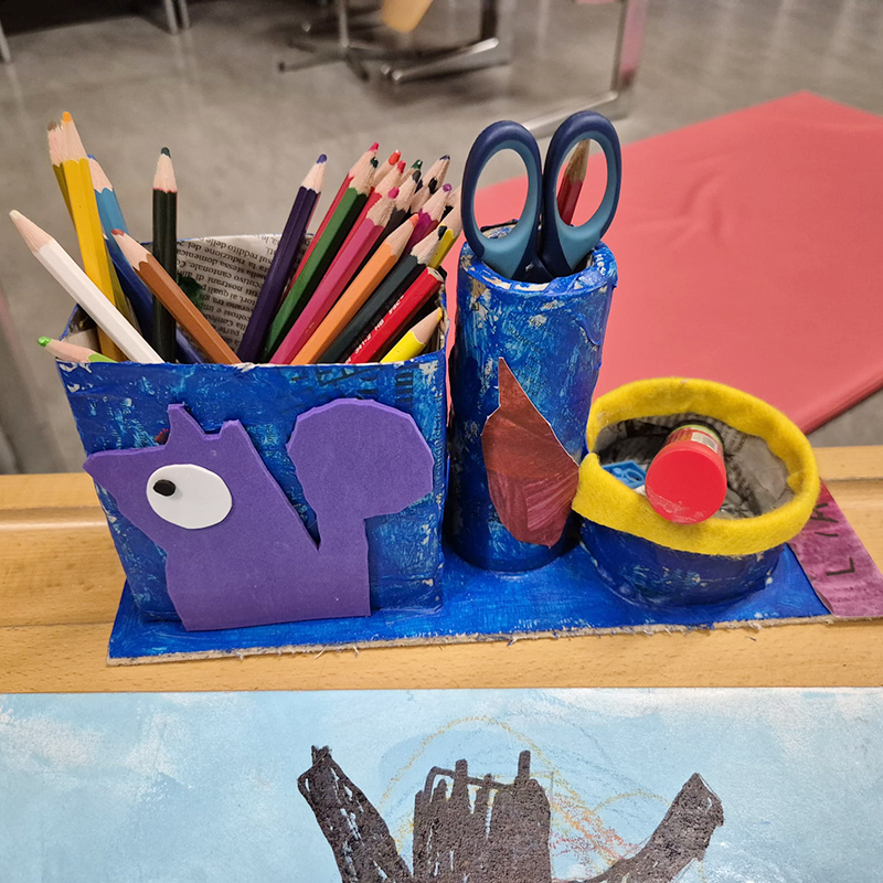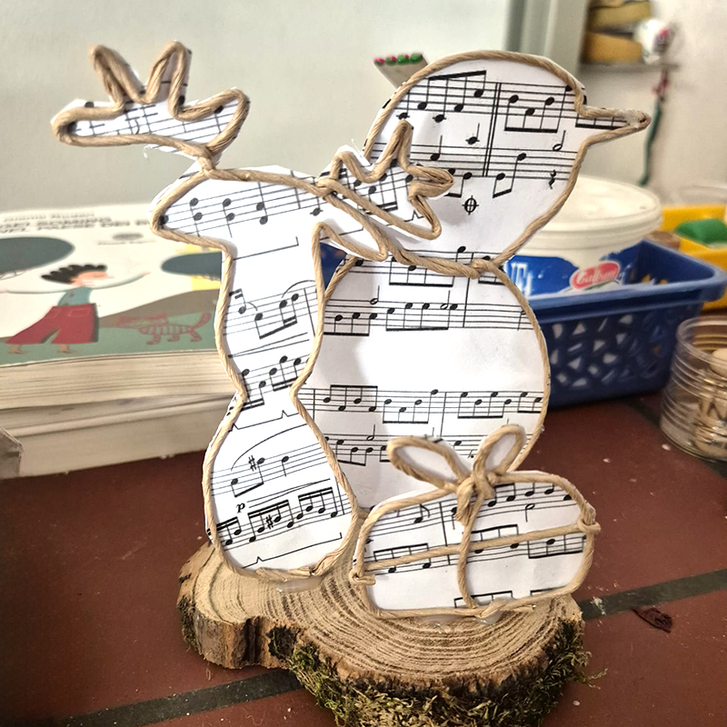 In questi due corsi abbiamo realizzato un coniglietto pasquale partendo da una bottiglia di plastica, uova di polistirolo, piatti di carta e cioccolatini VERI. Tutto dipinto con colori acrilici.