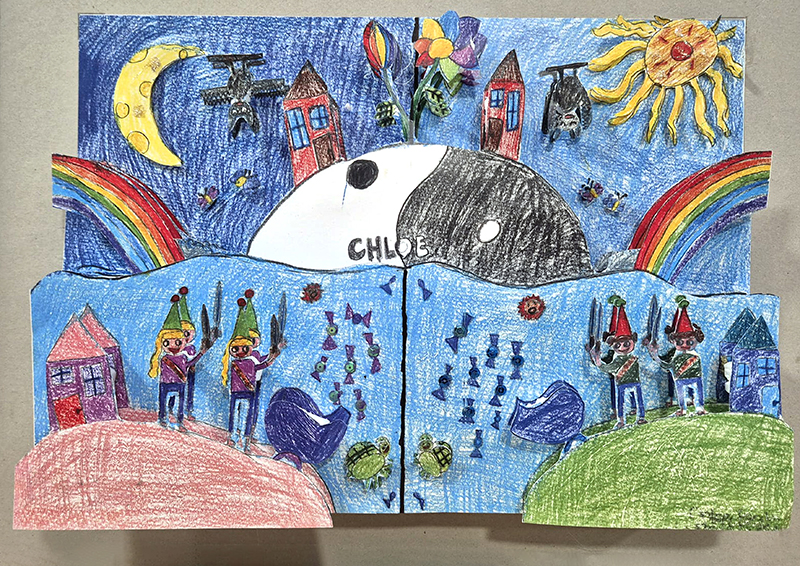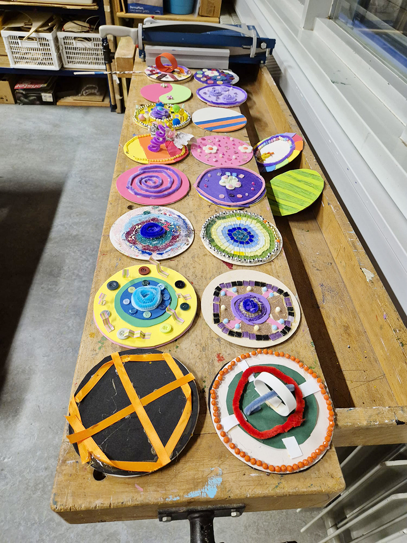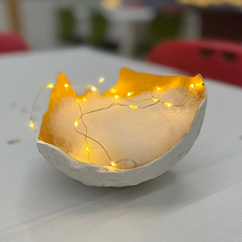 L'attesa che la carta cucina asciugasse dopo l'applicazione sul palloncino, con colla e acqua, ha creato una certa suspence; coronata da una bella applicazione di colori acrilici, sacchetti e paglia.
